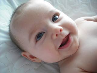 A few weeks ago she started rolling over from her tummy to her back. That was pretty easy, and she's gotten pretty quick with that.
